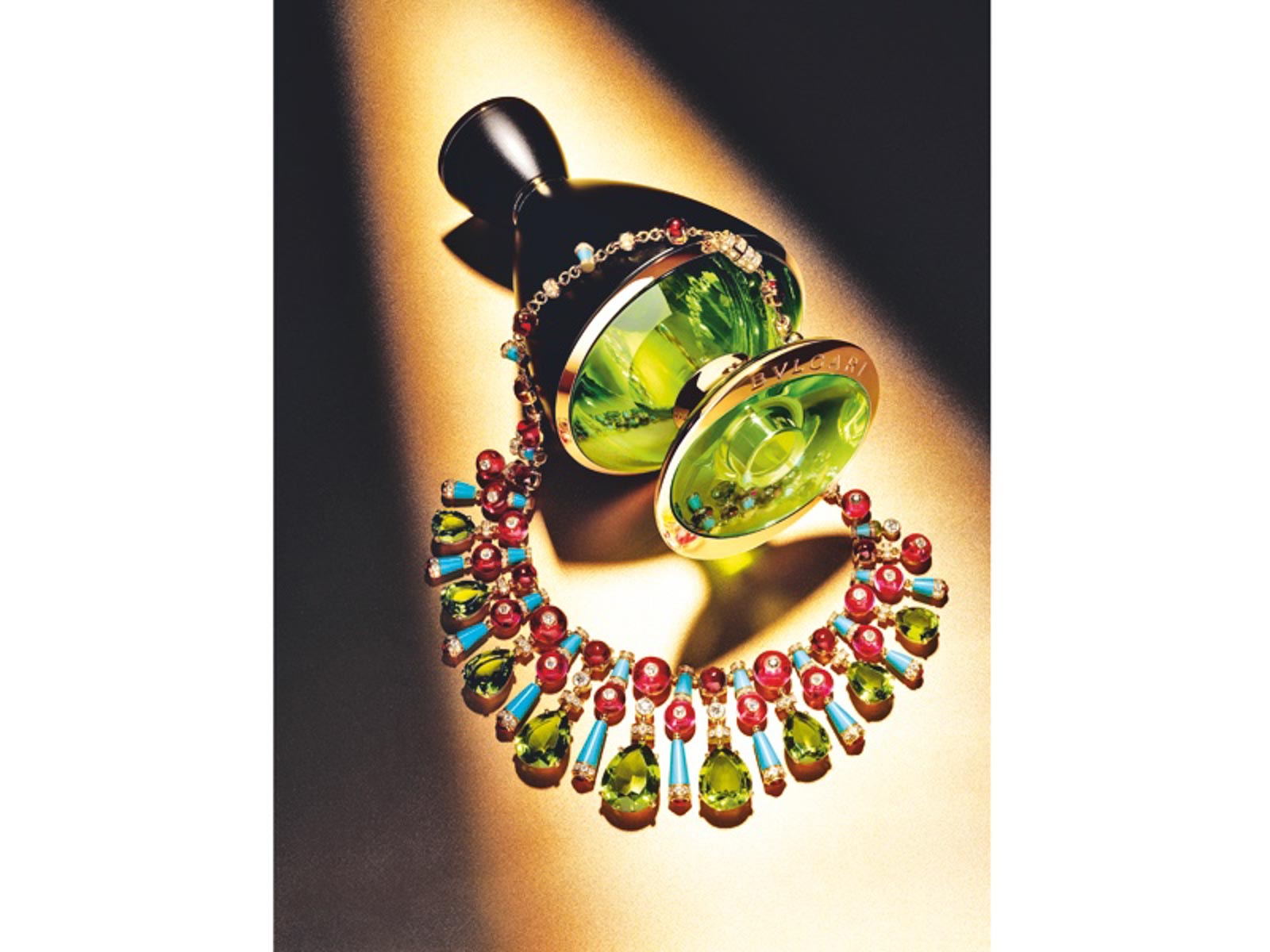 Seit der Lancierung seines ersten Parfums 1992 gehen bei Bulgari Düfte und Schmuck Hand in Hand. Bulgari Creative Director Lucia Silvestri erklärt: „Die beiden Komponenten bilden eine Symphonie, die dem Träger Freude bereitet. Das beste Beispiel ist die neue Kollektion „Le Gemme“.“ Diese umfasst sechs Düfte, die von den wichtigsten bei Bulgari verwendeten Edelsteinen inspiriert wurden. „Wenn ich einen solchen Stein in den Händen halte, ihn betrachte, ihn fühle und damit herumspiele, dann gibt mir das dieselbe Kraft, wie wenn ich einen Duft rieche, der mir gefällt“, ergänzt Silvestri. Und so setzt „Le Gemme“ dieser Symbiose die Krone auf. Die Flakons dieser Haute-Parfumerie-Düfte wurden vom Schweizer Designkollektiv Atelier Oï entworfen, die sich dafür von antiken Amphoren inspirieren ließen, in denen Reisende früher ihre Kostbarkeiten transportierten. Entsprechend dieser Inspiration präsentiert sich „Le Gemme“ als eine Reise durch Bulgaris Entstehungsgeschichte, festgehalten in sechs Edelsteinen und olfaktorisch übersetzt in sechs einzigartige Parfums.