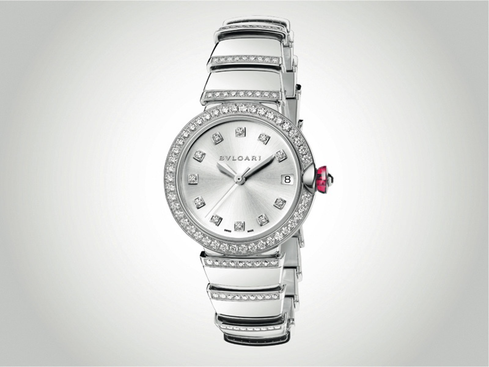 In den Fünfzigern wird Rom zum Mittelpunkt des internationalen Jet Set. Filmstars bevölkern das „Hollywood am Tiber“, unter ihnen Liz Taylor, Richard Burton, Audrey Hepburn oder Tyrone Power. Und die wollen eines: möglichst viel Bling-Bling. Hepburn beschenkt mit Bulgari-Schmuck etwa ihre Mutter, während sich Tyrone Power und Linda Christian hier ihre Eheringe aussuchen. Bulgari stattet die Damen und Herren aus, die ihrerseits das Traditionslabel in die Welt hinaustragen. Ganz subtil verändert sich der Stil: Die Colliers werden opulenter, man spielt mit Farbe und Edelsteinen und integriert 1960 zum ersten Mal antike Münzen als Hommage an den römischen Ursprung. Bulgari ist nicht zu stoppen, eröffnet schon bald die ersten Geschäfte in New York, Genf, Monte Carlo oder Paris. Die Welt braucht Schmuck – und Bulgari entwirft fleißig. Ägyptische und indische Einflüsse prägen das Label, bis Mitte der 70er eine neue Idee dazu kommt: Das Konzept der Tragbarkeit. Bulgari setzt sich zum Ziel, Schmuck zu kreieren, Stücke, die man morgens bis abends tragen kann, auf dem Roten Teppich genauso wie beim Flanieren in der Sonne. Immer mehr kristallisiert sie sich heraus, die typische Bulgari-Frau, eine dynamische Person, vielschichtig, elegant. Lucia Silvestri, seit 1988 Bulgaris Creative Director, erklärt ihre Vision: „Die Bulgari-Frau hat Charisma und sprudelt vor Lebensfreude. Verspielt, glamourös und einzigartig – sie verkörpert die lebende Form des perfekten Edelsteins.“ 1977 setzt das Haus mit seiner ersten Männeruhr einen weiteren Meilenstein. Zum ersten Mal wird das Logo selbst zum Dekorationselement und die „BVLGARI BVLGARI“ damit zum Verkaufsschlager. Vom Erfolg bestätigt, gründet Bulgari sein eigenes Uhrenunternehmen. Und zwar in dem einen Land, das für seine Zeitmesser bekannt ist wie kein anderes: die Schweiz.