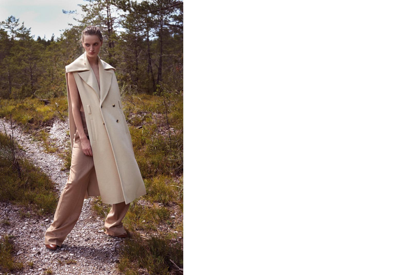 Weste von NANUSHKA. Hose und Schuhe von MAX MARA. Ohrringe von SASKIA DIEZ.