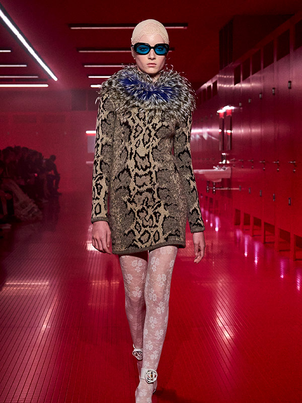 Jetzt ist der Zeitpunkt, seine Ophidiophobie zu überwinden. Das ist der hübsche Fachbegriff für die Angst vor Schlangen. Denn obwohl der allseits geliebte Leoprint nach wie vor Kleiderschränke und Kollektionen dominiert, holt die Python im langsamen, aber sicheren Kriechtempo auf. Von Boots über Taschen bis zu vollständigen Looks findet man das unverkennbare Muster überall. Besonders spannend wird es dann, wenn nicht nur klassisch mit Fake-Leder gearbeitet, sondern der Reptil-Look auf unerwartete Texturen wie Strick übersetzt wird.