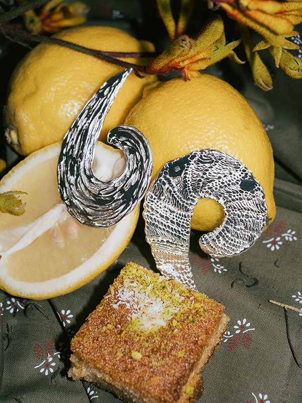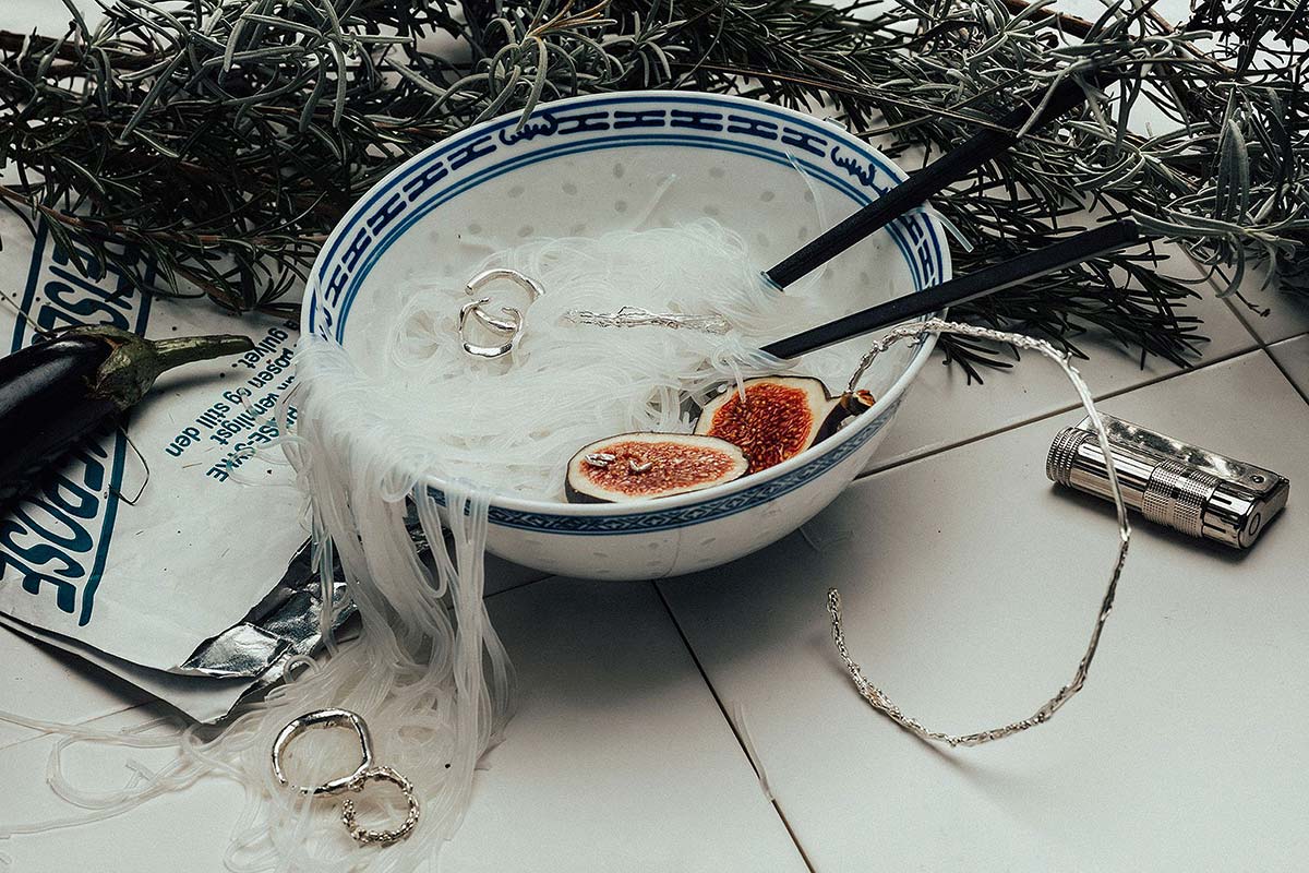 FV: Mein Go-to-Material ist Sterlingsilber. Ich liebe große, massive Stücke und das geht mit diesem Edelmetall in einem günstigen Preisrahmen. Ich finde außerdem Silber irgendwie sportlich und kühl, ich liebe es. Gerade bin ich aber auch an einem Feingold-Ring dran, was eigentlich kein Material für einen Ring ist, da es zu weich ist. Aber YCCIJ geht es auch darum, Spuren zu hinterlassen und ich kann es kaum erwarten, mit ihm erste Abdrücke aus meinem Alltag zu sammeln.