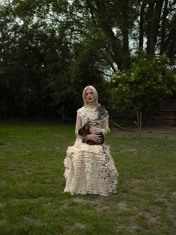 Kleid von MOULHAM OBID. Schmuck von NATHALIE FLÜCKIGER.