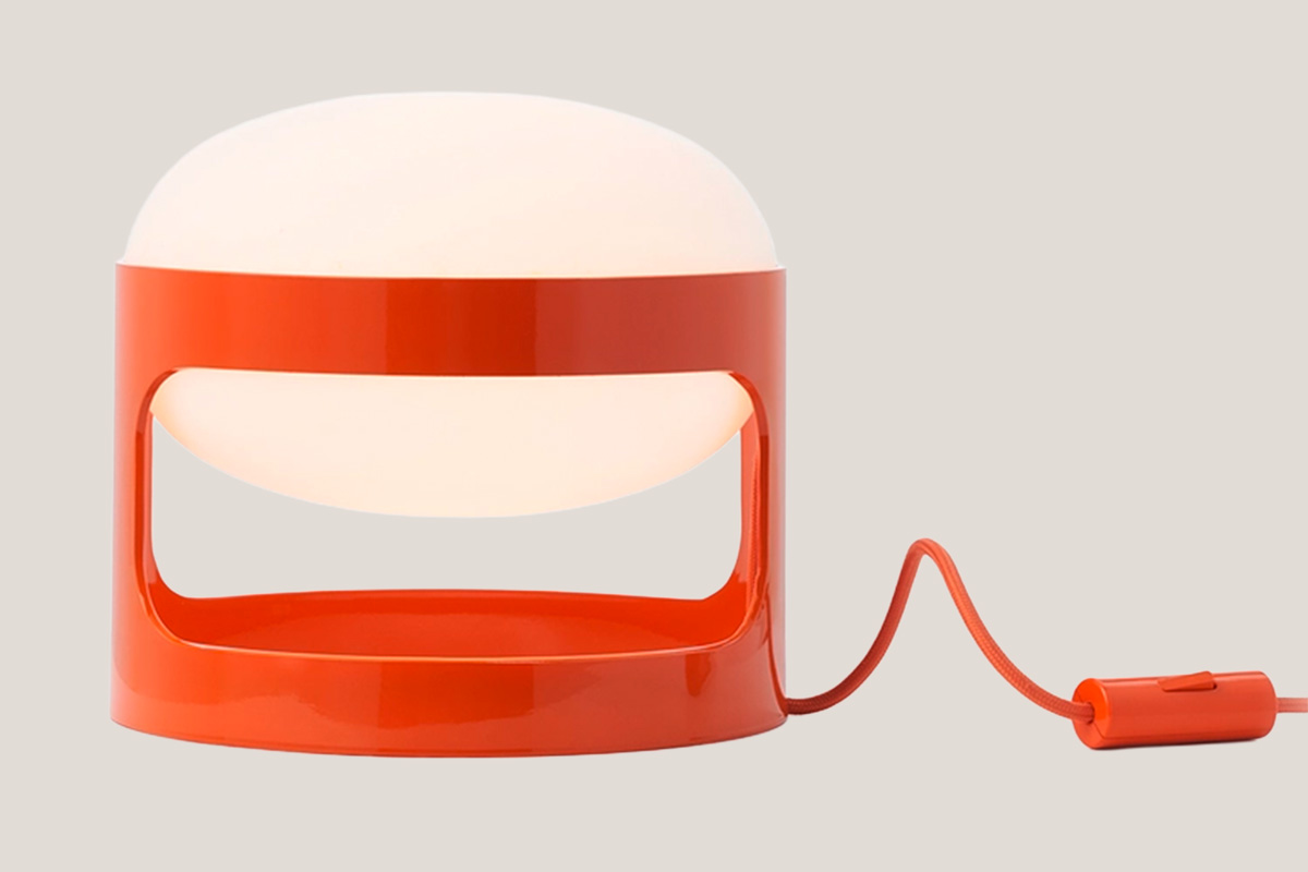 Ein Klassiker, neu interpretiert: Joe Colombos ikonische Lampe aus dem Jahr 1967 strahlt heute warmes, weiches Licht aus recycelten Materialien. Mit satinierter Schirmoberfläche und farblich passendem Stoffkabel verbindet sie Retro-Charme mit modernem Design.