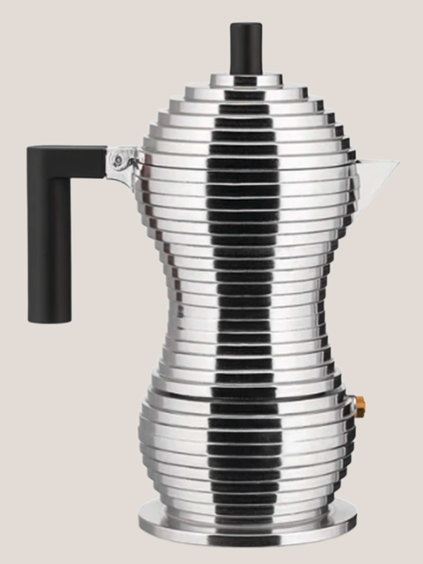 Die Espressomaschine Pulcina, entworfen von Michele de Lucchi, wurde aus Aluminium gegossen und sorgt durch seine Form für den perfekten aromatischen Espresso am Morgen.