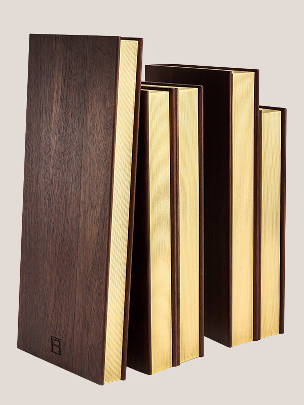 Für echte DesignliebhaberInnen: Luxuriöse Buchstützen, die selbst wie ein Stapel seltener Werke wirken. Aus Walnussholz gefertigt und mit Messing-Details veredelt, verwandeln sie jedes Regal in eine elegante Bühne für Lieblingsbücher.
