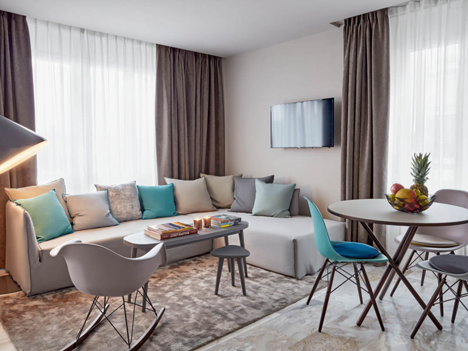 AG: Ich lasse mich auf all meinen Reisen inspirieren und besuche internationale Design- und Möbelmessen. So sammle ich spannende Inputs und kann diese an mein Architekturteam weiterleiten. In einer ersten Phase lassen wir unserer Kreativität freien Lauf, brainstormen, skizzieren und erstellen erste Moodboards. Dabei beginnen wir zwar mit den Möbeln, planen die Wohnung jedoch jeweils um diese herum und nicht umgekehrt. Auch die Accessoires sind in der ersten Phase bereits definiert und in den Plänen eingezeichnet. Danach stimmen wir uns in Meetings regelmäßig ab, erstellen Raumkonzepte und geben dem Gestaltungskonzept einen Namen. Erst nach zahlreichen Abklärungen in Bezug auf Verfügbarkeit, Lieferfristen oder Kosten steht das finale Konzept. Die eigentliche Umsetzung erfolgt dann in enger Zusammenarbeit mit anderen Abteilungen und mit externen Partnerunternehmen. Zu guter Letzt sorgen unsere Cleaning Ladies dann für bezugsbereite Wohneinheiten.